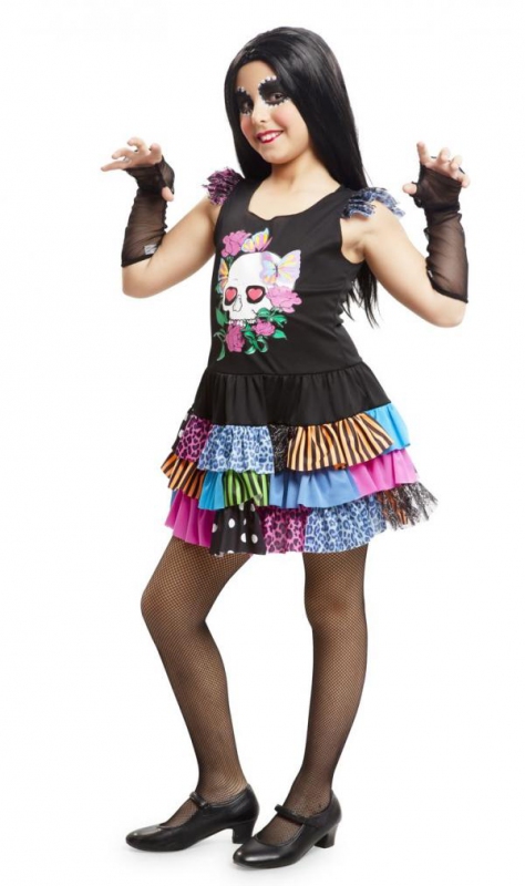 Součástí dětského kostýmu na halloween jsou šaty a rukavice bez prstů.